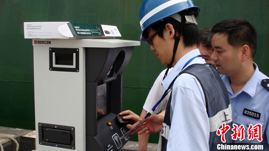 7月22日,为了确保世博安保口岸安全,一批特殊的“机器人”亮相吴淞海港口岸。这批特殊的“机器人”是边检最新式的电子门禁系统,主要用于口岸出入境人员证件的检查。中新社发 陈静 摄