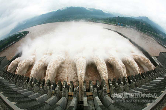图:三峡大坝守坝官兵经受最大洪峰考验(6)