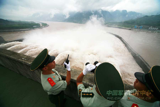 图:三峡大坝守坝官兵经受最大洪峰考验(8)