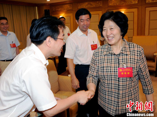 7月22日,中共福建省委八届九次全体会议在福州福建会堂召开。当日举行的中共福建省委八届九次全体会议上披露的信息显示,今年上半年,福建经济在投资、工业生产、进出口、财政等方面都有上佳表现。图为出席该会议的中共福建省委书记孙春兰(右)参加分组讨论时和与会代表亲切交谈。中新社发 刘可耕 摄