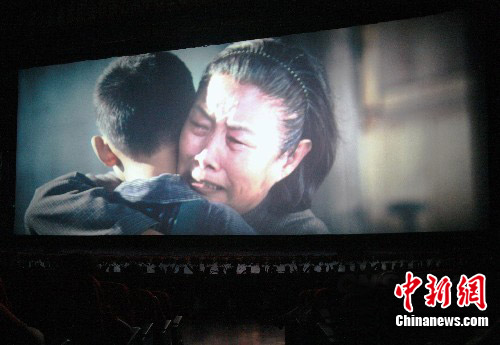 7月22日,有“中华第一幕”之称的超大电影屏幕正式亮相河北石家庄金棕榈艺术中心巨幕影城。据了解,此屏幕约有4层楼高,宽度达28米,是目前全国室内最大的电影巨幕。图为今日全国首映的《唐山大地震》在该影城首映。中新社发 翟羽佳 摄