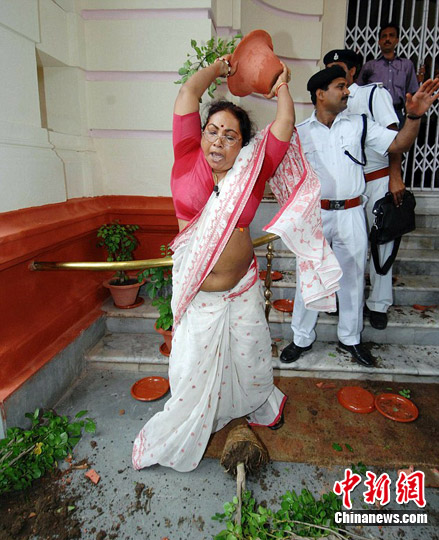日前,印度比哈尔邦议会的武斗丑闻逐日升温,执政派与反对派议员拳脚混战持续数天后,67名议员21日由于“动武”而遭到停职。这一决定宣布后,反对派女议员基约蒂·辛格抓起议会大厅门口装饰用的几个大花盆扔向安保人员以发泄她的不满,并再度引起骚动。三名安保人员只好将基约蒂·辛格拖走,其余被停职的66名反对派议员也逐一被安保人员拖走。