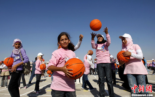 组图:加沙7500儿童同拍篮球打破世界纪录