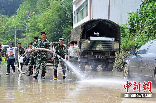 图:重庆城口堰塞湖水位下降 部分灾民返家(2)