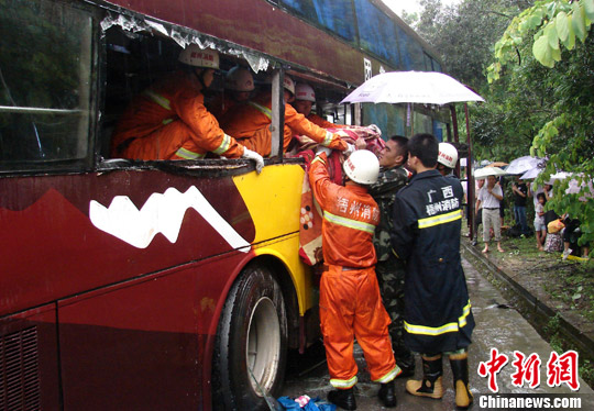 台风“灿都”7月22日晚间携暴雨袭击广西,致广西大部分地区受灾。7月23日早晨,广西梧州市藤县境内两车在暴雨中迎“灿都”前行,不慎相撞,车上乘客2死10伤。中新社发 张浩生 摄
