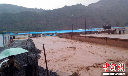 华亭煤业集团大柳煤矿新建矿井零时住房被淹。季小燕 摄