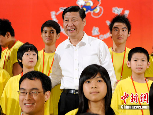 图:习近平和海外华裔及港澳台地区青少年在一起(3)