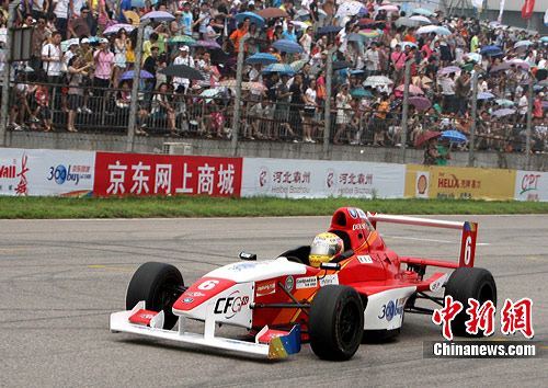 7月25日,“京东网上商城杯”中国方程式大奖赛揭幕战在北京金港国际赛车场地面50多度的高温下落幕。上万名前来现场观赛的车迷热情不减,最终从杆位发车的康比特加速车队小将张大胜获得冠军,京东网上商城车队崔岳获得亚军,生活无限车队李思晨获得季军。