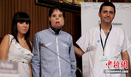当地时间7月26日,接受世界首例全面换脸手术的患者奥斯卡在西班牙巴塞罗那术后首次公开亮相,并接受了电视采访。据悉,换脸手术是2010年3月在瓦尔德希伯伦大学附属医院进行的。该男子是在一次射击事故中包括鼻子和嘴唇在内的原有面部表皮和肌肉大部分遭受损害,因此不得不寻求所谓换脸手术。负责手术的大夫表示,换脸手术可望恢复患者90%左右的面部功能。