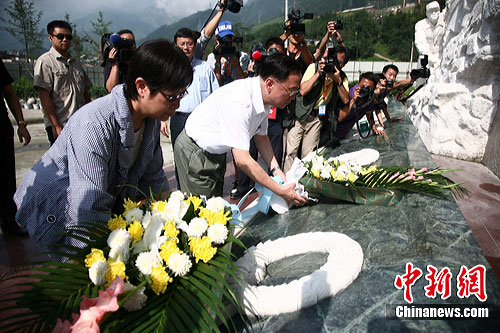 曾荫权夫妇在汶川向“5.12”遇难同胞及烈士献花(2)