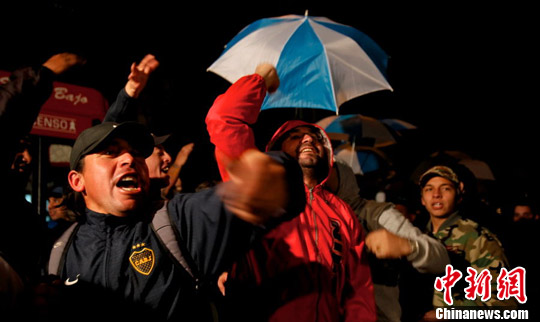 阿根廷足协宣布马拉多纳下课以后,一些激进的马拉多纳粉丝聚集到阿根廷足协门外,声援心目中的偶像,并在足协办公楼外涂抹标语,斥责阿根廷足协主席格隆多纳。他们挥舞着阿根廷国旗颜色拼接而成的蓝白条纹雨伞,表达对马拉多纳的支持。