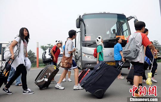 7月28日,2010年海外华裔及港澳台地区青少年“中国寻根之旅”夏令营营员陆续离开北京。中新社发 刘震 摄