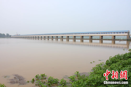 图为杜家台分蓄洪闸。该闸共有30孔,如果开启后提高5公寸,每孔下泄流量可达1500立方米每秒。艾启平 摄