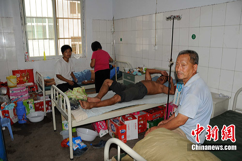 7月28日,河南栾川县潭头镇卫生院病房内,在此接受治疗的幸存者向记者讲述大桥垮塌时的惊魂一刻。7月24日下午5点20分,河南省栾川县潭头镇汤营村伊河汤营大桥整体垮塌,截至27日晚11点,此事件已造成37人死亡,29人失踪,有1人被成功营救出来,目前搜救工作仍在加紧进行。中新社发 豫分 摄