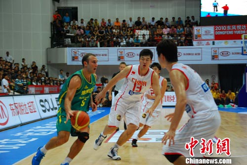 7月28日晚,斯坦科维奇杯中国队与澳大利亚队的比赛在广西柳州进行。最后十秒,阿联没能防住安德森,最后以63比64的一分之差负于澳大利亚。中新社发 周潇男 摄