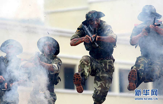 7月27日,在武警东莞训练基地,反恐特战队员进行武装追捕训练。陈帆 摄