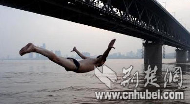 图:长江汛期武昌桥头跳水“表演”极不安全(4)