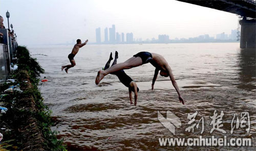 图:长江汛期武昌桥头跳水“表演”极不安全(5)