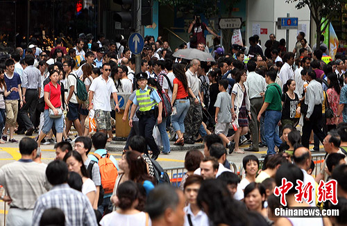 香港统计处29日最新数字推算,30年后香港人口将达到889万,人口将持续老化,65岁或以上人口会由一成三升至近三成。男女比例失衡情况也将会加剧。图为香港铜锣湾区人流熙熙攘攘,络绎不绝。中新社发 洪少葵 摄