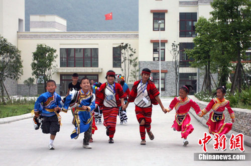7月30日,台湾民意代表马文君带领的126名来自台湾“9·21”大地震灾区和“8·8”风灾灾区的师生,来到四川北川擂鼓镇八一中学,与该校师生开展文化交流活动。中新社发 刘忠俊 摄