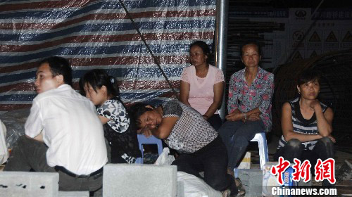 图为7月31日晚11点,死者家属等待相关部门善后处理结果。中新社发 王东明 摄