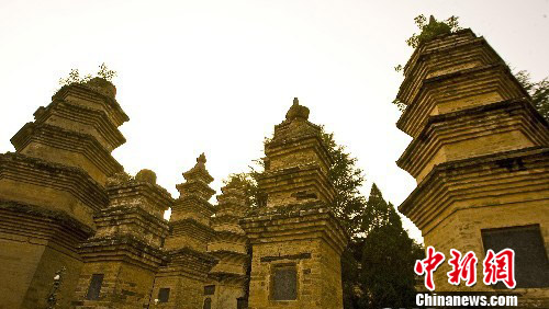 图为嵩山历史建筑群中的少林寺塔林的资料图片。中新社发 王中举 摄