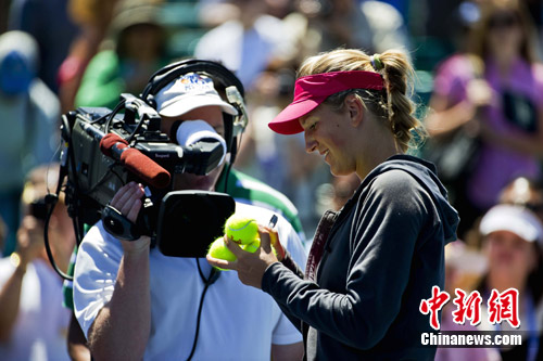 当地时间7月31日,美国加州斯坦福大学网球中心,“西部银行杯”网球精英赛进入第6天,白俄罗斯美少女阿扎伦卡以2:0淘汰头号种子斯托瑟,率先进入半决赛。今天也是阿扎伦卡21岁生日,图为比赛结束后,她为观众签名。