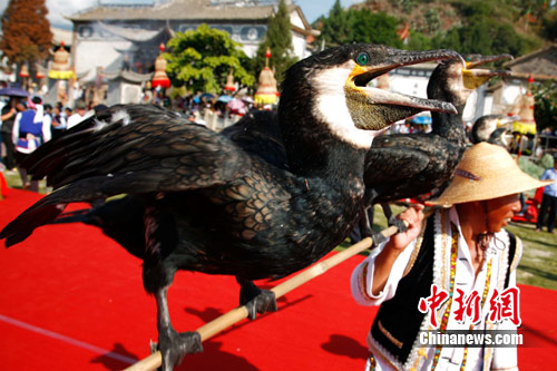 8月1日,云南第二大淡水湖泊洱海正式开海捕鱼,参加第二届大理国际影会的上百名海内外摄影师,用手中的镜头记录下这一独具特色的民俗盛宴。图为等待下水捕鱼的鱼鹰。