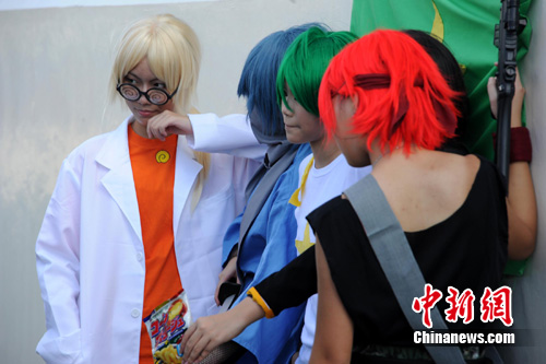 8月1日,值“香港动漫电玩节”举行之际,一班青年人在金紫荆广场玩“酷”。 盛夏时节的香港,是个各种时尚新潮涌现的季节。