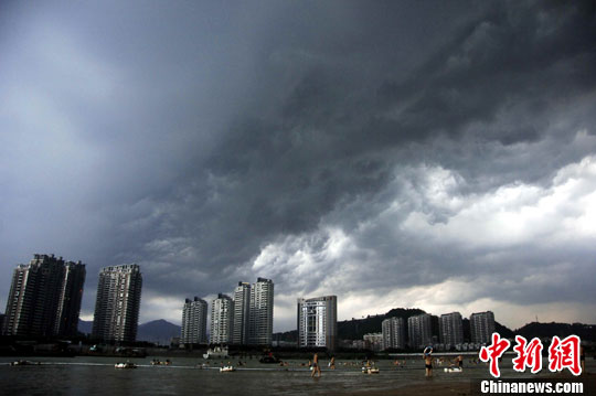 8月2日傍晚,福州上空突然乌云密布、电闪雷鸣,许多在闽江边游泳避暑的福州市民赶紧上岸回家。持续高温天,福州天气如小孩子脾气一样变化无常。