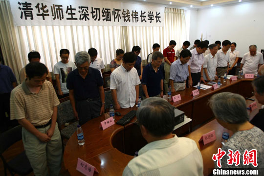 8月2日,清华大学航天航空学院和物理系的部分师生召开追思座谈会,以缅怀于7月30日去世的中国著名科学家钱伟长。中新社发 富田 摄