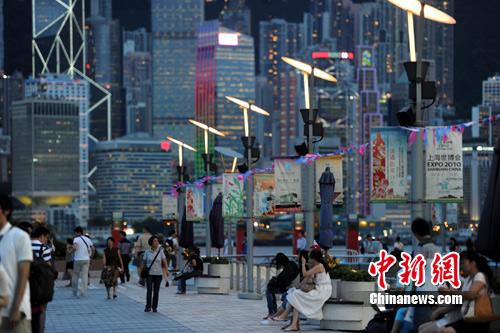 8月2日,傍晚时分香港星光大道海风习习景色多姿彩,白日里倍受高温“烤”验的市民亦纷拥于此欣赏美景纳凉。据天文台预报,受到一道高压脊影响,未来一两天中国东南部的粤港澳地区持续晴朗及炎热 。 中新社发 郑祚声 摄