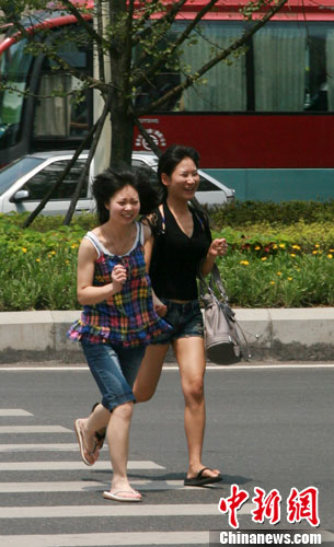 火辣辣的太阳蒸腾着地面,“火炉”山城演绎着热辣的高温热恋。户外热浪灼人,重庆各大街道上行人稀少,偶有外出的当地市民也尽量寻树庇荫,并以浅色衣、墨镜、太阳伞等防晒装备抵御热辣辣的高温袭击。
