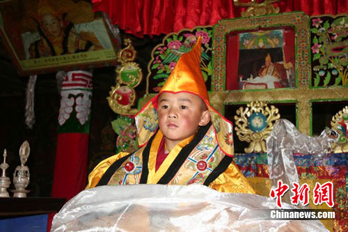 第六世德珠·加羊西绕班典活佛(图)坐床庆典仪式8月2日在西藏扎果寺多佳大院隆重举行。西藏自治区人民政府代表、自治区政协副主席、自治区民宗委主任洛桑久美宣读了《自治区人民政府关于特准洛桑多吉继任为第六世德珠活佛的批复》并向第六世德珠活佛颁发活佛证书。