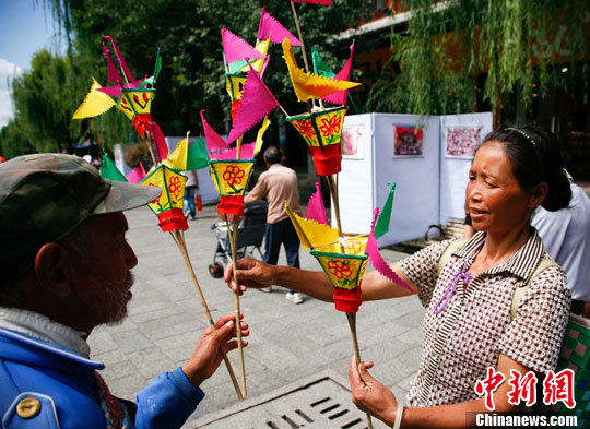 8月4日,大理古城街头火把节味道渐浓,火把升斗随处可见。火把节是云南许多少数民族的传统节日。图为在购买火把节标志物——“升斗”的民众。中新社发 刘冉阳 摄