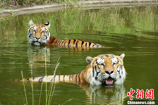 园方每天购进食用冰块5吨,分发给低抗能力差的动物们。大熊猫见外面的气温太高,会扒到冰块上美美地睡上一觉;老虎一班属于独来独往者,但气温高时,也能顾全大局,三虎或是两虎可共一池。