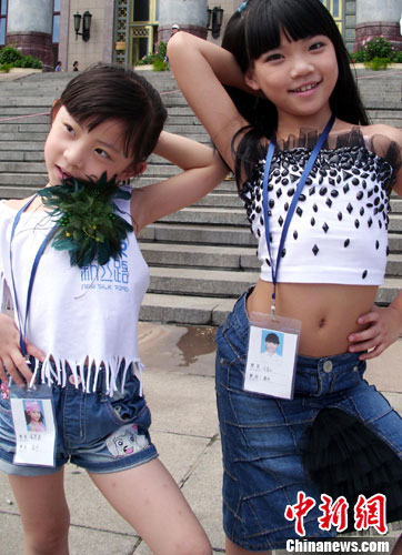 8月5日,2010新丝路中国少儿模特大赛总决赛颁奖典礼在北京人民大会堂举行,来自中国17个省市地区的500多名小模特参加了颁奖典礼,获奖组别分为儿童组、少儿组以及少年组。图为参赛获奖小模特展示风采。中新社发 钱兴强 摄