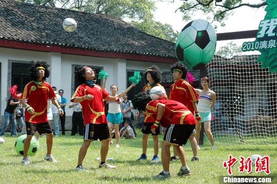 8月5日,漓泉·绿色联盟杯城市足球赛启动仪式在广西桂林雁山园举行。图为花式足球表演。中新社发 唐梦宪 摄