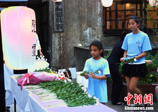8月5日,广岛原子弹爆炸65周年纪念日前一天,被爆遗址之一的本川小学举行慰灵仪式。这是距离爆心最近的一所小学,当时有400名师生遇难。图为慰灵仪式上献花的美国孩子,这是一家致力于反战反核武器的美国民间组织开展的一次日美儿童交流活动。 中新社发 孙冉 摄