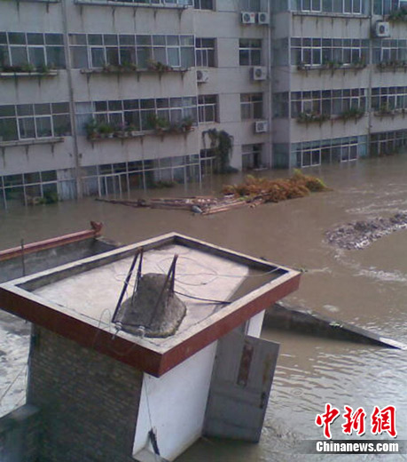 8月8日凌晨,甘肃省舟曲县遭遇的强降雨导致泥石流,宽500米,长5公里,涌入县城形成堰塞湖。最新消息甘肃舟曲县泥石流致80人遇难2000人失踪,县城多幢大楼损毁。图为大楼被泥石流淹没。 中新社发 杨桑吉成 摄