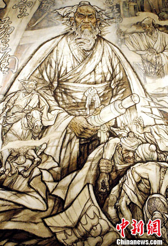 8月8日,“锦绣海西——福建省当代美术大展”在北京中国美术馆开幕。图为“锦绣海西——福建省当代美术大展”国画作品《一代完人黄道周》。中新社发 钱兴强 摄