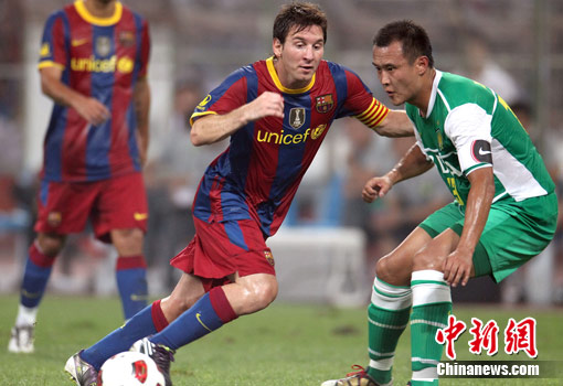 8月8日晚,北京奥运会开幕两周年之际,西班牙巴塞罗那与北京国安的比赛在国家体育场鸟巢正式开打,巴萨3-0战胜北京国安。梅西打满了上半场的45分钟,阿根廷人虽然没有进球,但头顶脚踢两次击中门柱,给中国球迷交上了一份还算满意的答卷。
