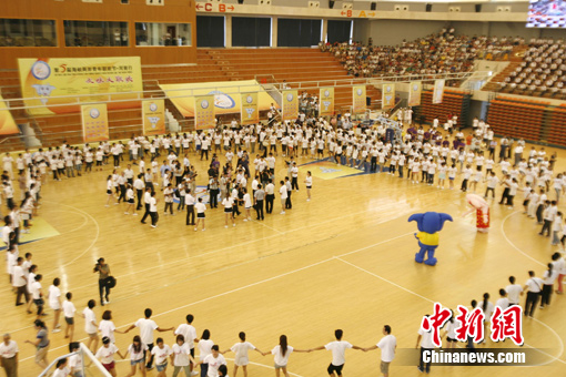 8月8日下午,豫台两地青年1000余人在郑州大学起舞。当日,第五届“海峡两岸青年联欢节”河南文体大联欢在郑州大学西亚斯国际学院综合体育馆举行。