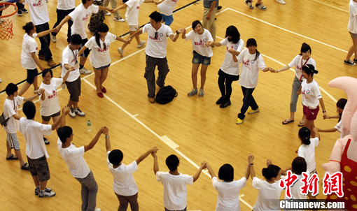 8月8日下午,豫台两地青年1000余人在郑州大学起舞。当日,第五届“海峡两岸青年联欢节”河南文体大联欢在郑州大学西亚斯国际学院综合体育馆举行。中新社发 王中举 摄
