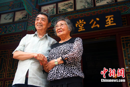 8月9日,中国著名学者闻一多先生次子闻立雕来到云南大学缅怀父亲生前的英烈事迹,并在父亲学生的陪同下参观父亲遇害前发表《最后一次演讲》的旧址——云南大学致公堂。图为闻一多之子闻立雕(左)和闻一多先生的学生在致公堂前合影。