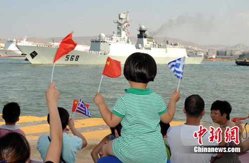 8月9日上午,中国海军第五批护航编队抵达比雷埃夫斯港,对希腊进行为期2天的友好访问。