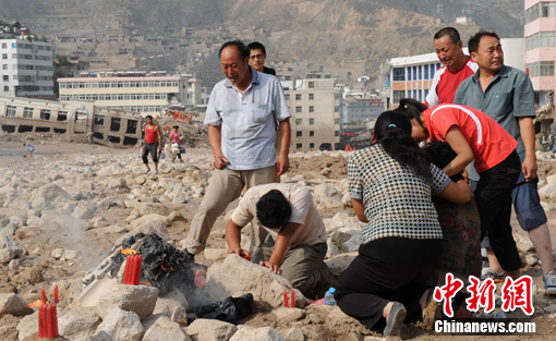 甘肃舟曲泥石流:幸存者泪祭遇难亲人