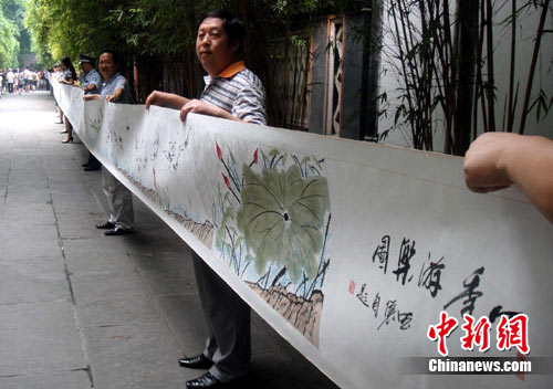 8月10日,著名书画家路德怀将其创作的70米书画长卷《四季游乐图(虾)》,捐赠给三国文化圣地——成都武侯祠博物馆,这是目前武侯祠博物馆书画藏品中最长的一幅。历时一个月创作而成的长卷上,五六百只虾栩栩如生,气韵生动。