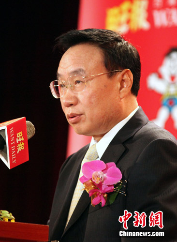8月11日,海协会副会长李亚飞在台北出席第一届旺报两岸和平创富论坛。 中新社发 刘舒凌 摄