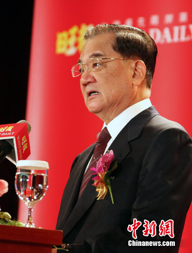 8月11日,海协会副会长李亚飞在台北出席第一届旺报两岸和平创富论坛。图为中国国民党荣誉主席连战致辞。 中新社发 刘舒凌 摄
